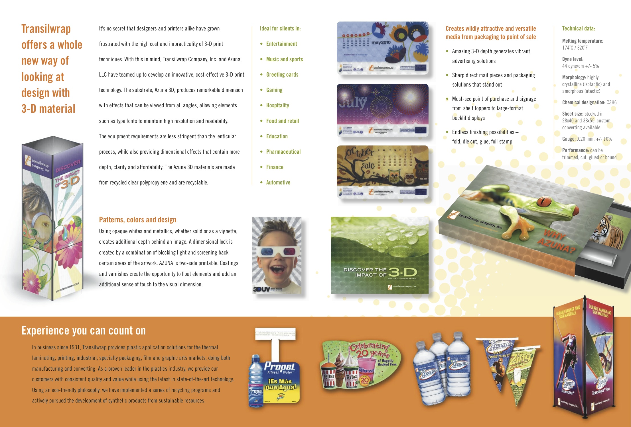 Of course, our goal always is to provide top-notch products and services. But we’re humbled whenever we — or our clients — are recognized for projects that have passed through the PCG creative halls in various capacities. In the case of the latter, one of our clients, Transilwrap (a leading supplier of printable plastics), recently won three awards at the 24th annual Gold Ink Awards, a competition co-sponsored by Publishing Executive, Book Business and Printing Impressions magazines. The honors included a Gold Award for the Transilwrap Azuna® 3D Display Package, and a Pewter Award for its Azuna® 3D mailer. PCG directed the concepts, design and production of both the mailer and the Azuna® 3D Display Package projects.
